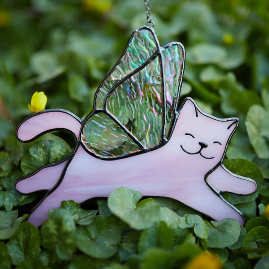 Beautiful Stained Glass Fairy Cat Suncathcer for Window Hangings Gift for Her
