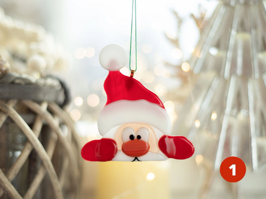 Christmas clearance, Peeking Santa ornament, Fused glass ornament, Christmas tree decorations, New year gift