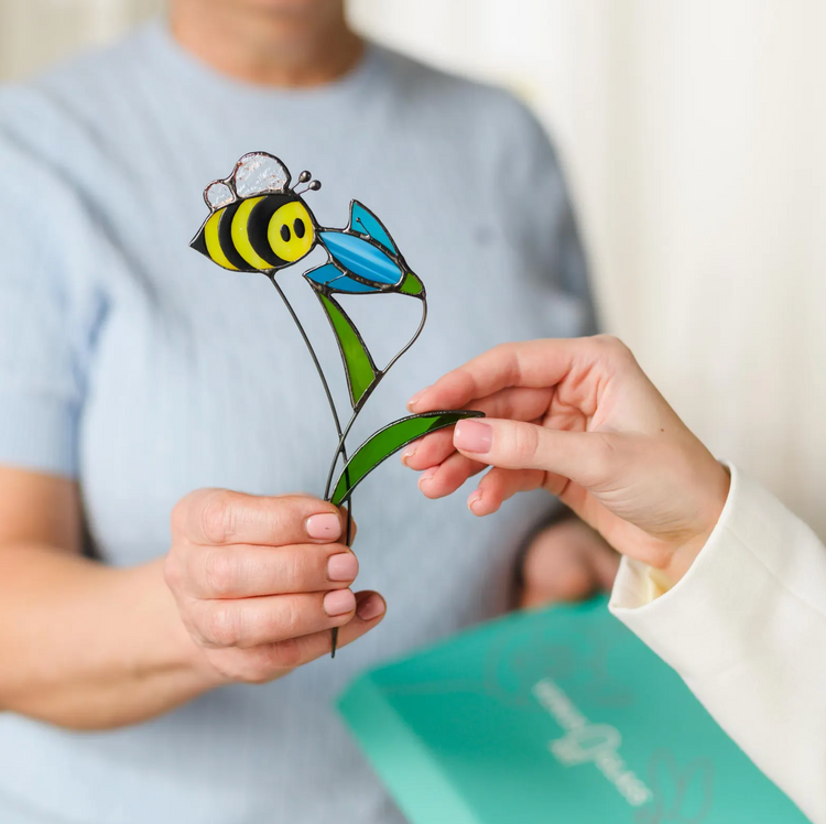 “Let your plants tell a story—add a stained glass stake that reflects your personality and style.”