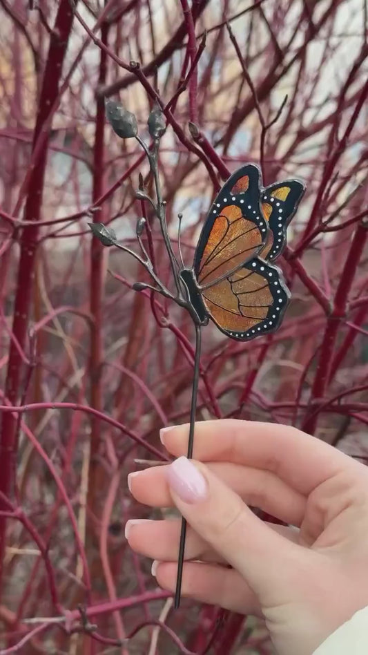 Monarch Butterfly Garden Stake Orange Glass Insect Decor Nature Lover Gift