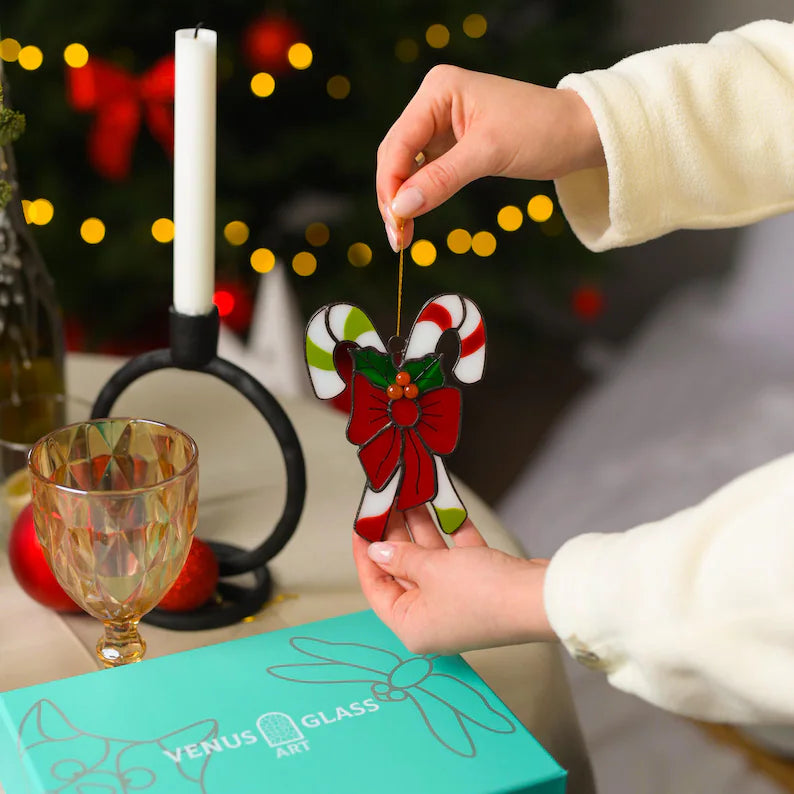 🎁 Christmas Candy Cane Ornament – Sweet Tradition in Stained Glass