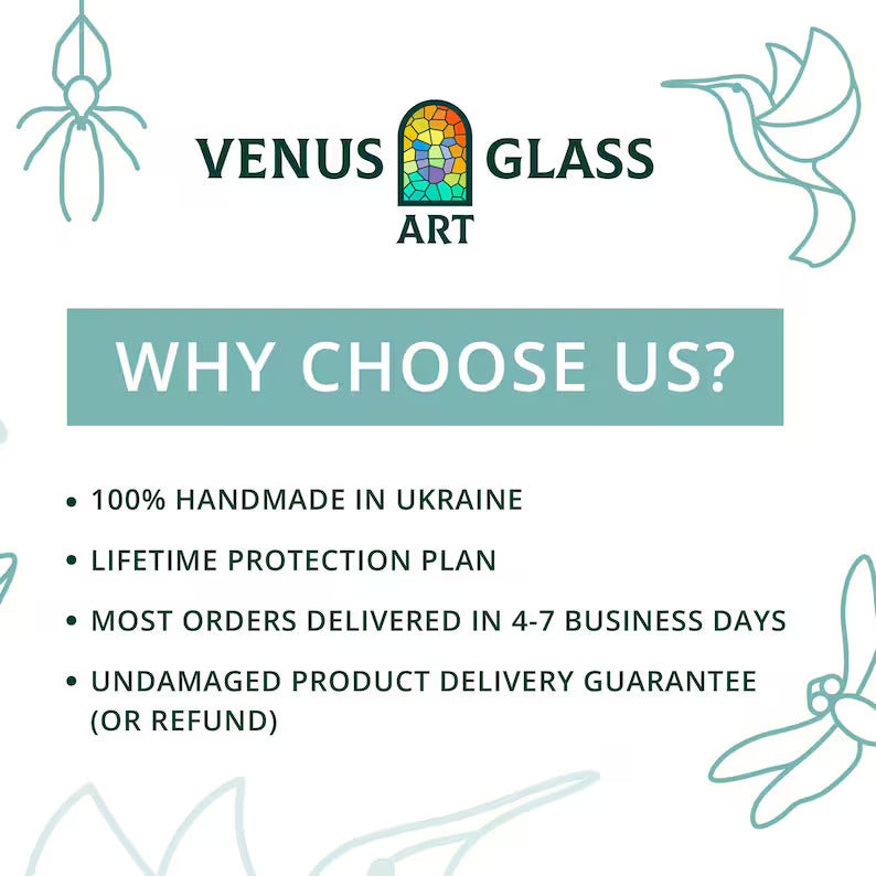 Our stained glass suncatchers are carefully packaged in high-quality gift boxes with special foam protection inside. With over five years of experience shipping worldwide, we take every precaution to ensure safe delivery.