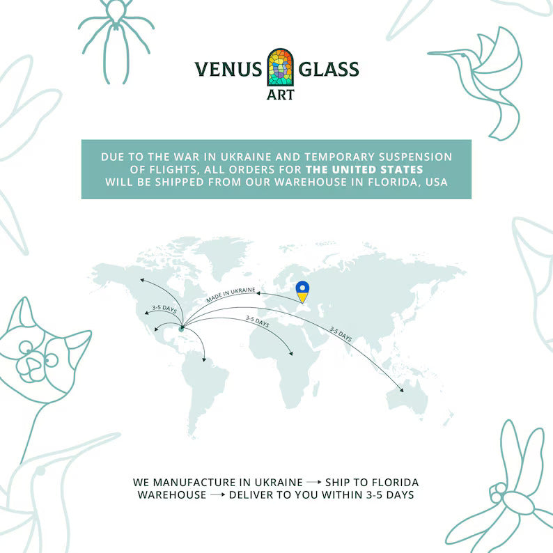Our stained glass suncatchers are carefully packaged in high-quality gift boxes with special foam protection inside. With over five years of experience shipping worldwide, we take every precaution to ensure safe delivery.