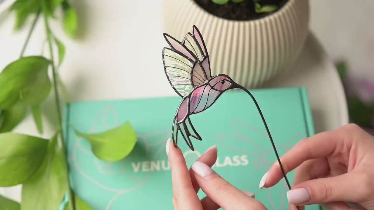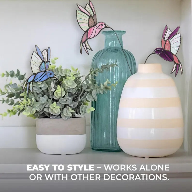 Celebrate tenderness, beauty, and quiet strength with this Stained Glass Hummingbird Plant Stake, designed as a heartfelt Christmas gift for Mom. Symbolizing love, resilience, and joy, the hummingbird hovers as a guardian of cherished moments. Available in multiple color variations, it brings a soft glow into any space, catching light in wings that seem forever in motion.